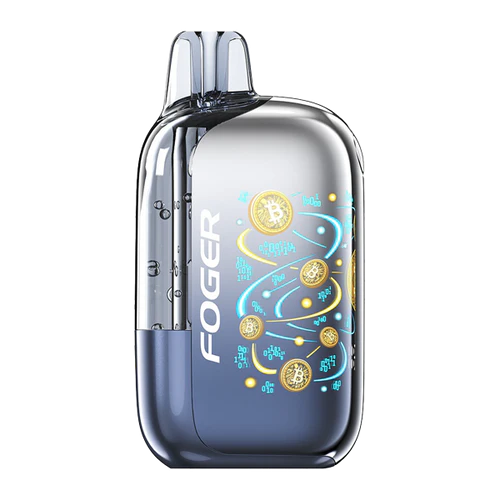 Foger Vape 35K is a disposable vape with a Bitcoin-inspired design and transparent tank, featuring a rechargeable 850 mAh battery. It delivers up to 35000 puffs in Norm Mode (25,000 in Boost Mode). The device uses 0.8 ohm dual mesh coils and 50 mg/mL (5%) nicotine strength. It includes a curved OLED screen for real-time data, two wattage modes, adjustable airflow, and USB-C fast charging.