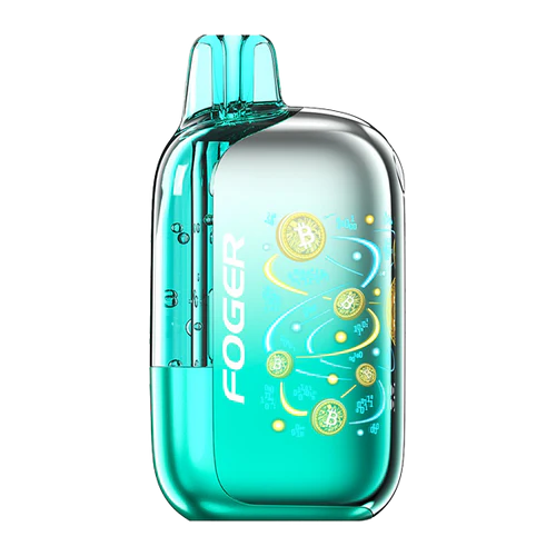 Foger Vape 35K is a disposable vape with a Bitcoin-inspired design and transparent tank, featuring a rechargeable 850 mAh battery. It delivers up to 35000 puffs in Norm Mode (25,000 in Boost Mode). The device uses 0.8 ohm dual mesh coils and 50 mg/mL (5%) nicotine strength. It includes a curved OLED screen for real-time data, two wattage modes, adjustable airflow, and USB-C fast charging.